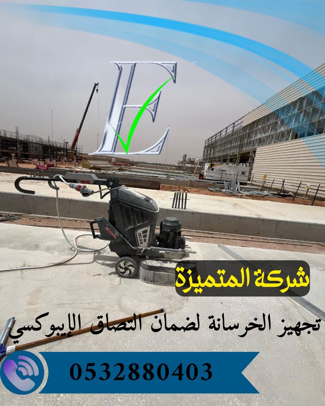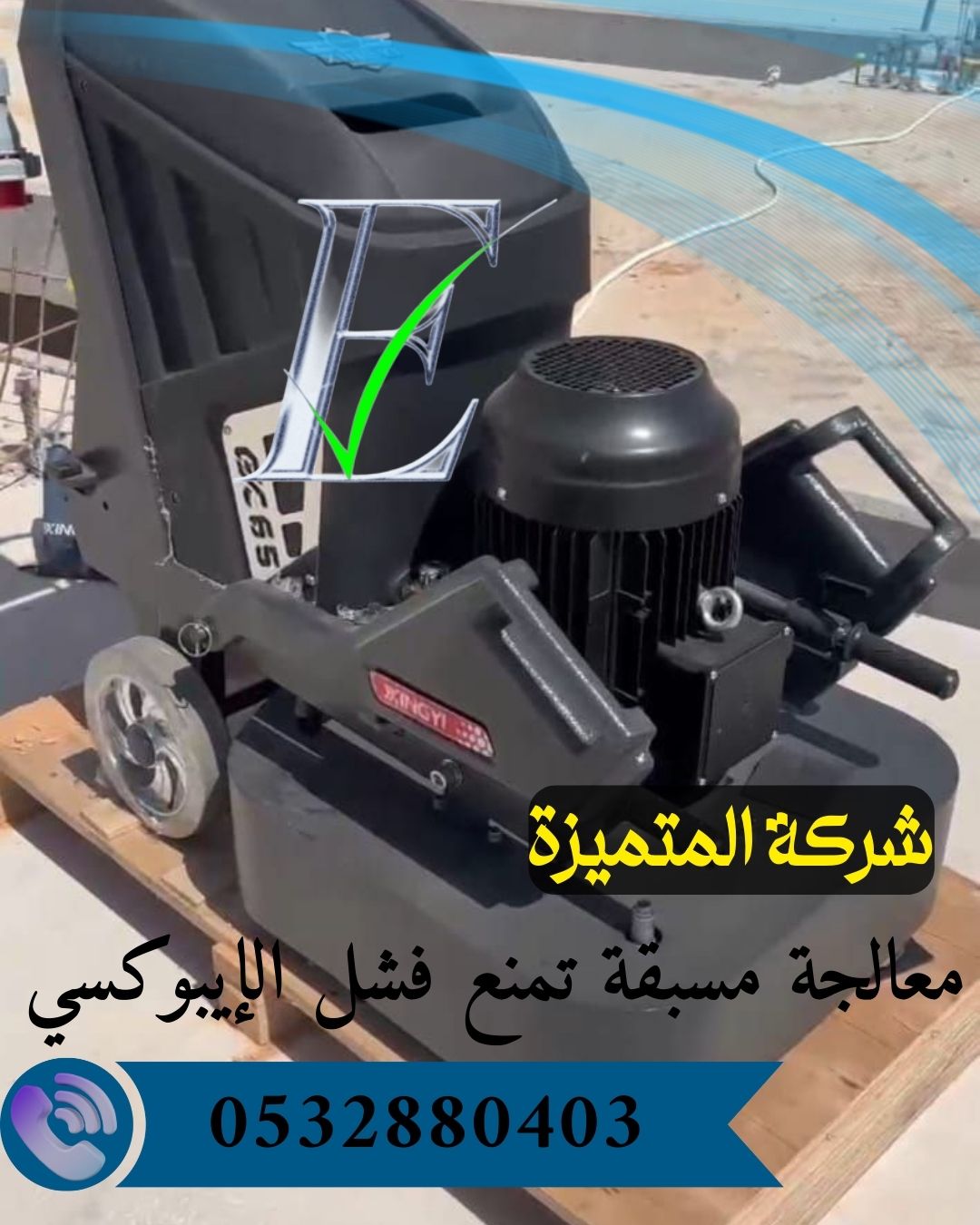يتضمن هذا العمل استخدام معدات متقدمة مثل ماكينات طحن الخرسانة (Grinders) مع أقراص صنفرة متعددة الدرجات لإزالة الطبقة العليا غير المستوية ولتحقيق نعومة نسبية مناسبة قبل تشطيب الإيبوكسي.